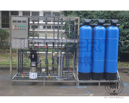反渗透设备是将原水经过精细过滤器、颗粒活性碳过滤器、压缩活性碳过滤器等,再通过泵加压,利用孔径为1/10000μm(相当于大肠杆菌大小的1/6000,病毒的1/300)的反渗透膜(RO膜),使较高浓度的水变为低浓度水,同时将工业污染物、重金属、细菌、病毒等大量混入水中的杂质全部隔离,从而达到饮用规定的理化指标及卫生标准,产出至清至纯的水,是人体及时补充优质水分的最佳选择.由于RO反渗透技术生产的水纯净度是目前人类掌握的一切制水技术中最高的,洁净度几乎达到100%,所以人们称这种产水机器为反渗透纯净水机。
